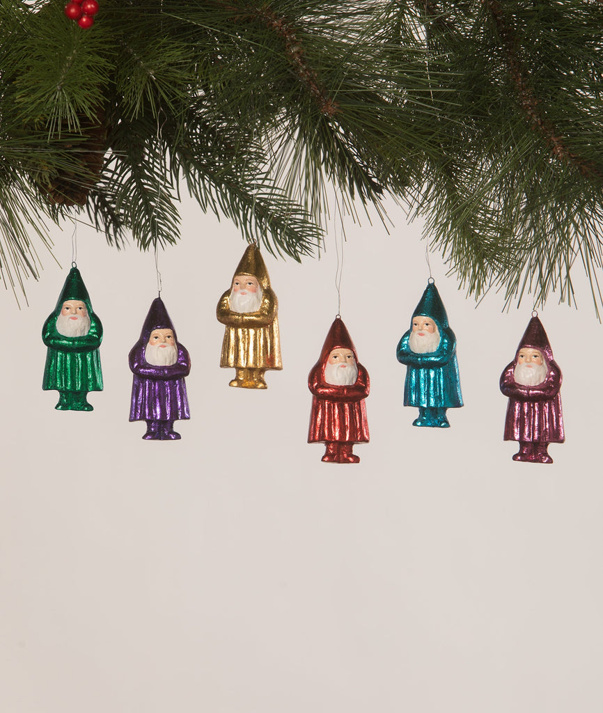 This amethyst metallic foiled Belsnickle Santa ornament is the perfect addition to your Christmas tree. Hand-painted resin with metallic leafing. 1" X 1" X 3". TD2195.